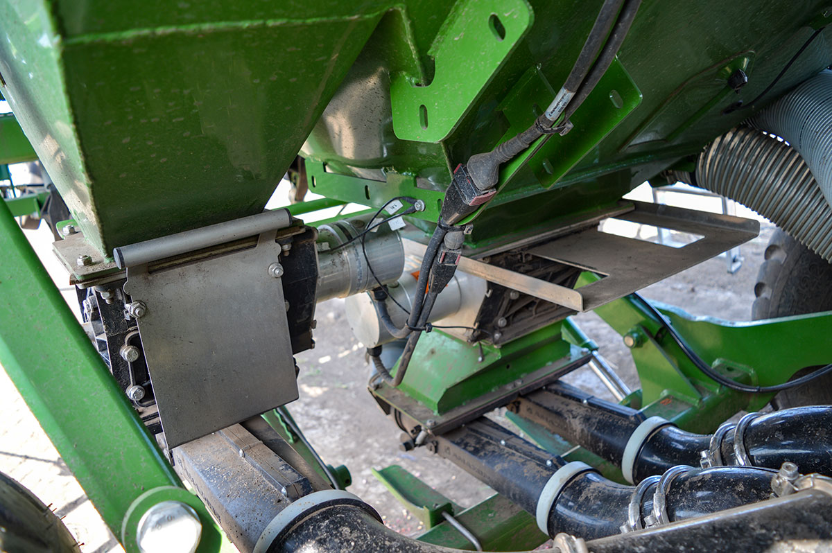Сошники закріплено на чотирьох окремих балках. Глибина висіву виставляється на кожній із них механічно в межах 2–8 см.